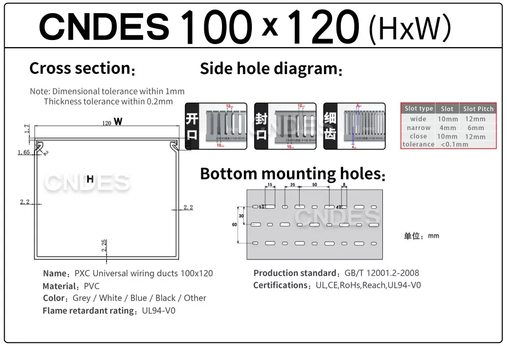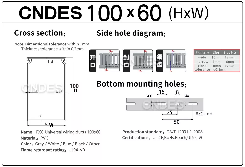 CNDES, Özelleştirilmiş 100mm Yükseklik Açık Yuvalı PVC Muhafaza Kablo Kanallarının üretiminde uzmanlaşmış, 24 yıllık deneyime sahip profesyonel bir kablo kanalı üreticisidir. Burada 100mm yüksekliğinde kablo kanalı serisi ürünlerimizi tanıtacağız.