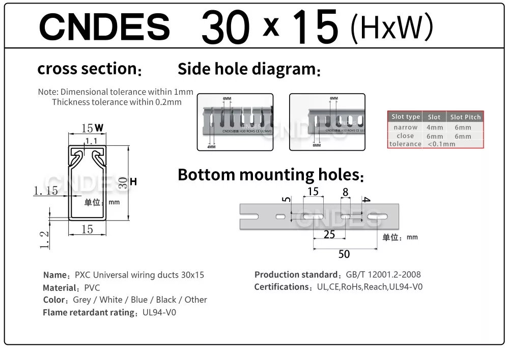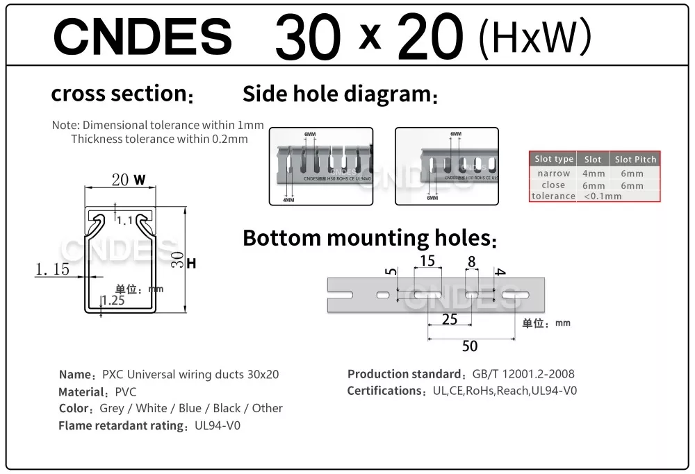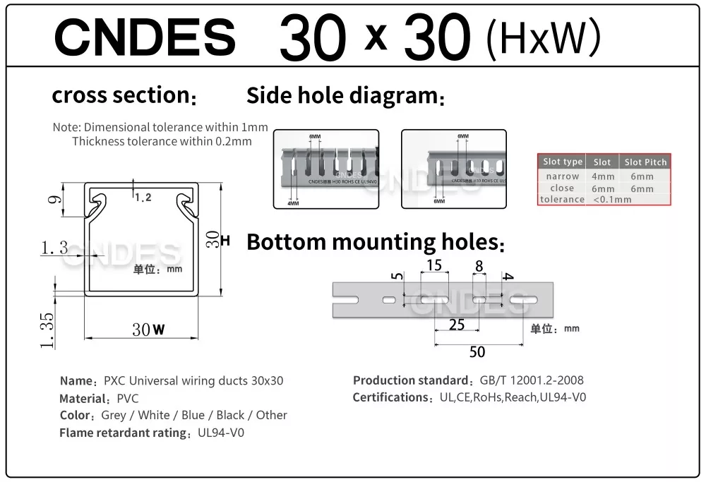 CNDES'in Özelleştirilmiş 30mm Yükseklikli Oluklu PVC Kablo Yönetim Kanalı, çeşitli endüstriyel, ticari ve konut ortamlarında verimli, kompakt ve güvenli kablo yönlendirme için tasarlanmıştır. Dar alan kısıtlaması olan uygulamalar için ideal olan bu kanal, kablolarınızın düzenli, korumalı ve kolay erişilebilir olmasını sağlar.