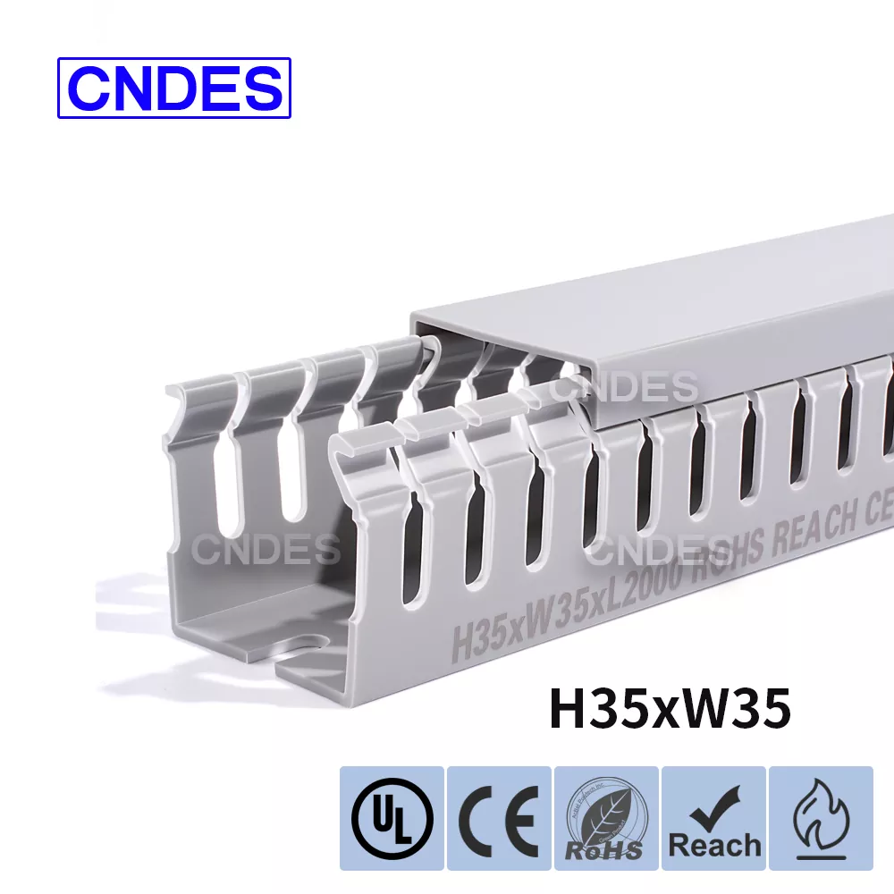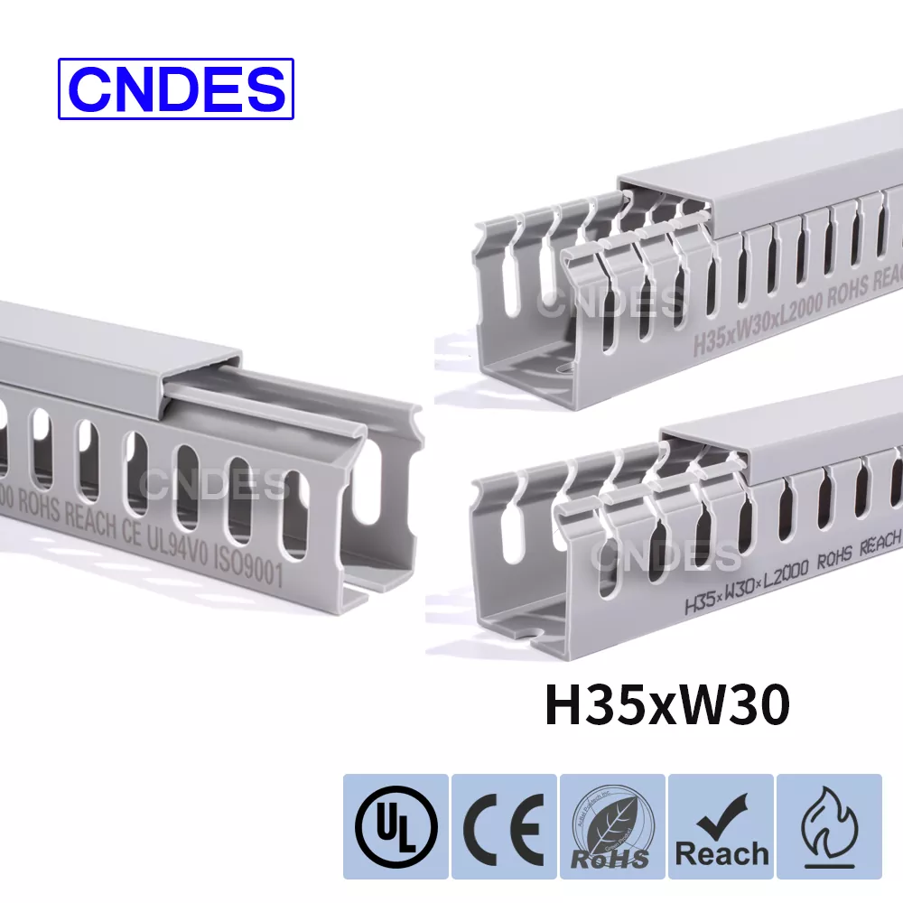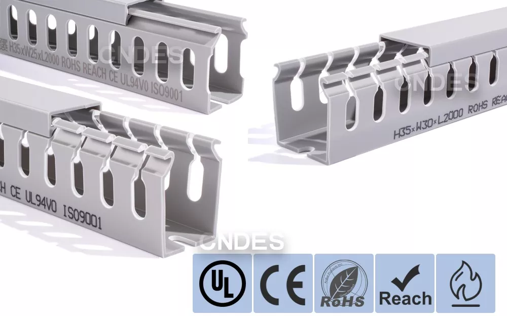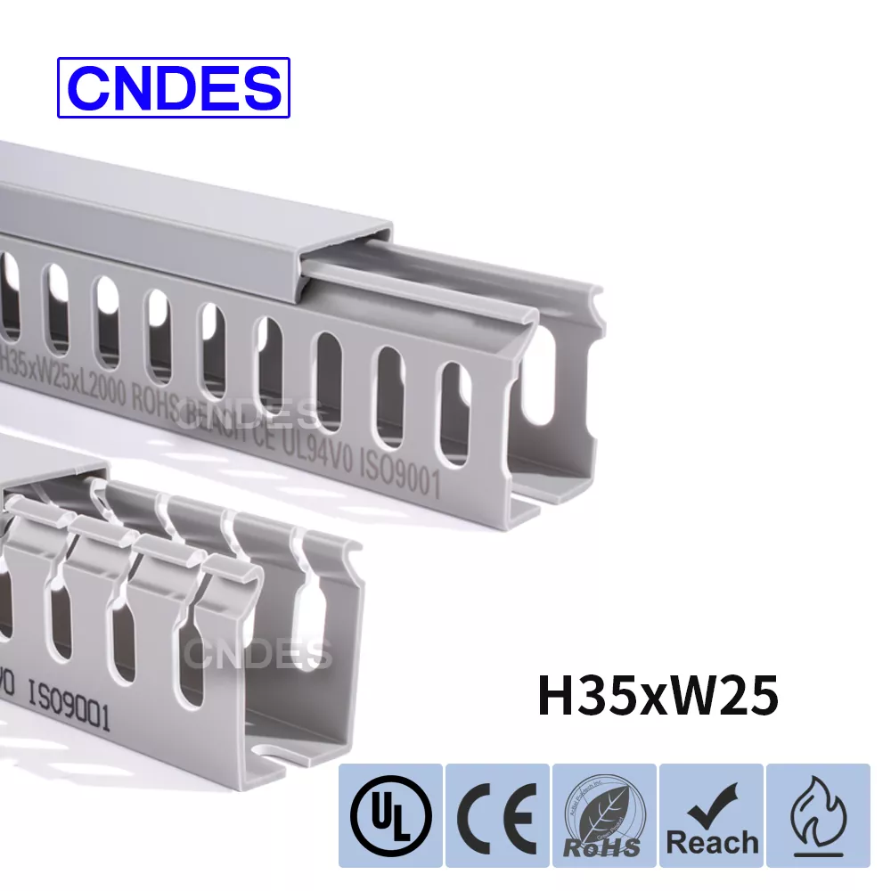 Çin şirketi CNDES tarafından üretilen Özelleştirilmiş 35mm Yükseklik Oluklu PVC Tel Yönlendirme Kanalı, sert bir PVC taban ve çıkarılabilir bir kapaktan oluşur. Tabanda her iki tarafa da damgalanmış, "tarak dişleri" oluşturan eşit mesafeli parmak benzeri oyuklar bulunur. Bu dişler elle kırılarak telin herhangi bir pozisyondan yatay olarak çıkmasına olanak sağlanır. Kapak kolayca yerine oturarak düzgün bir görünüm sağlar. Alttaki bir sıra montaj deliği DIN 43659 standart aralığına uygundur. M5 vidalar veya perçinler kullanılarak panellere, dolap çerçevelerine veya benzer yapılara hızlı bir şekilde sabitlenebilir.