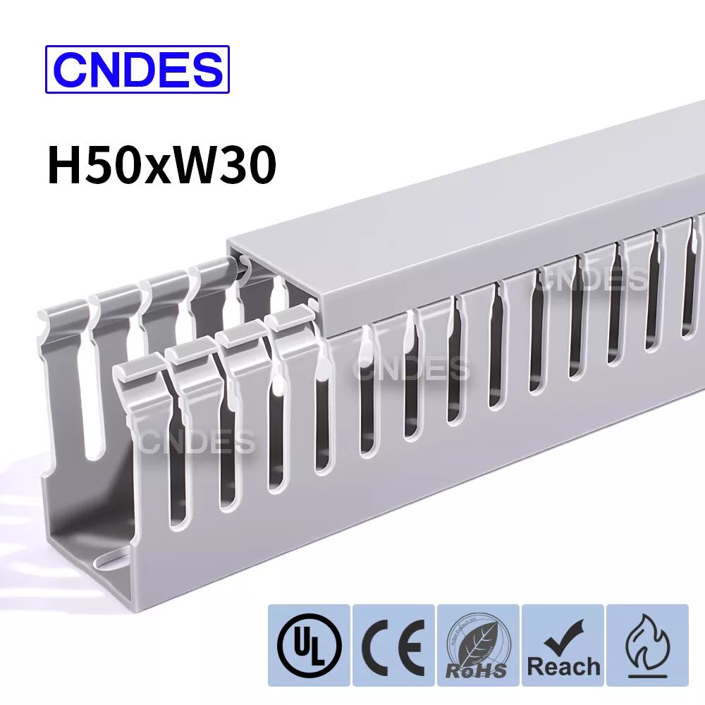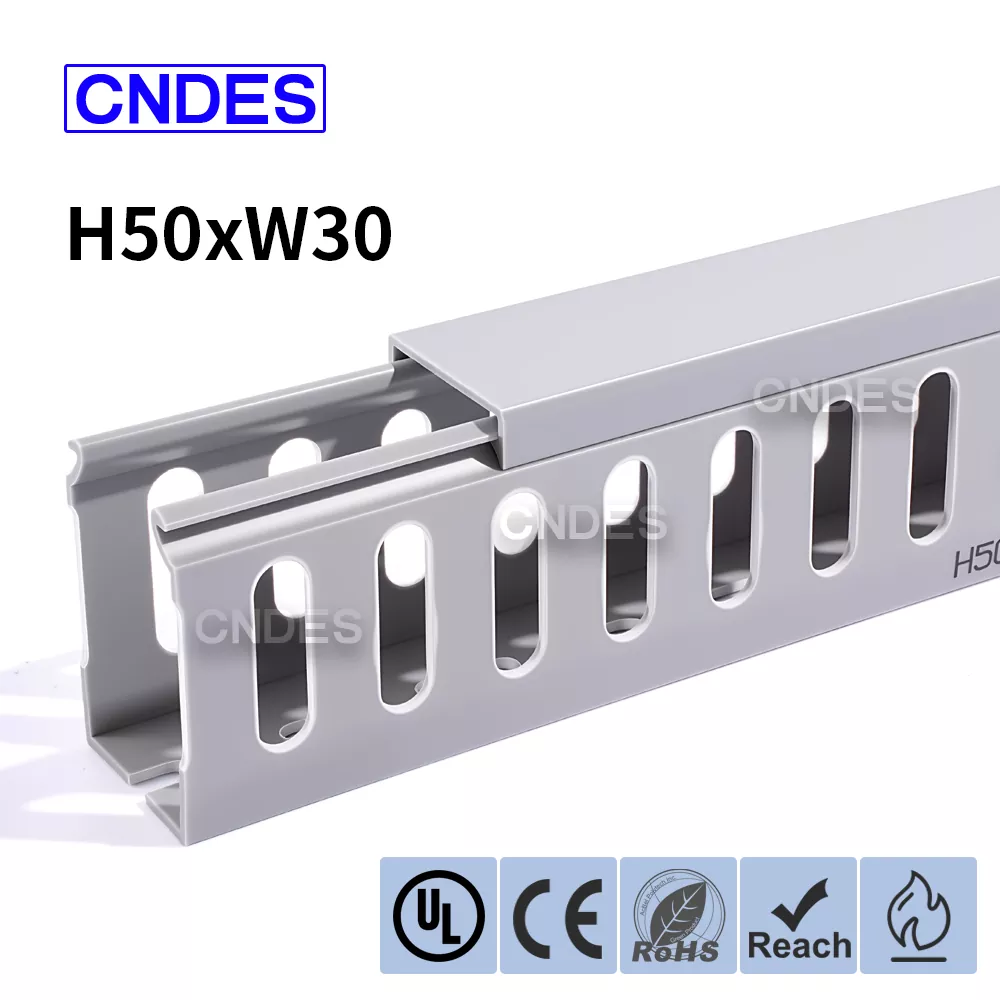 CNDES'in Kaliteli 50×30 Oluklu PVC Kablo Düzenleme Kanalı, küçük kontrol kabinleri, veri muhafazaları ve ekipman bağlantı kutuları gibi dar alanlardaki kabloların yönetimi için kompakt, etkili bir çözümdür. Bu ince profilli kablo kanalı, montajcıların panelde aşırı yer kaplamadan kabloları düzenlemesine, ayırmasına ve korumasına olanak tanır.