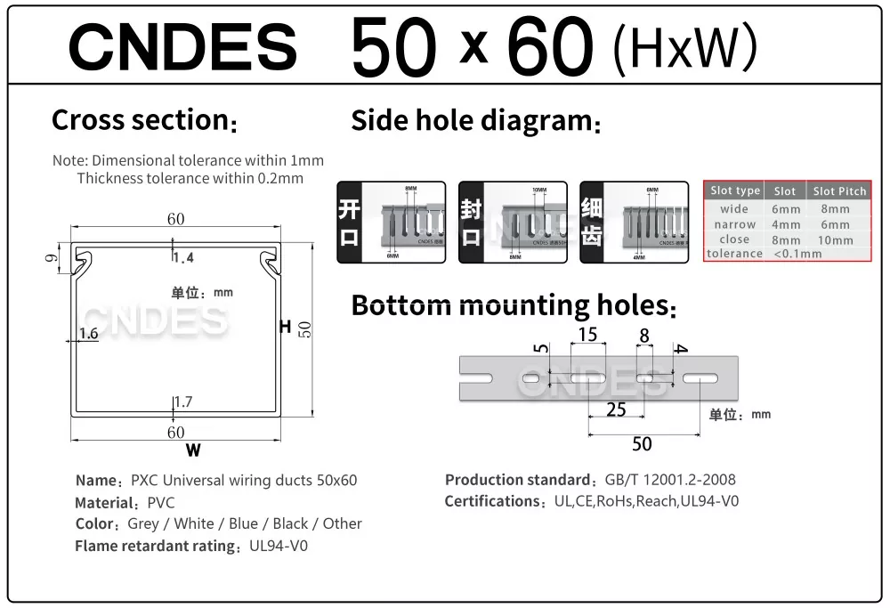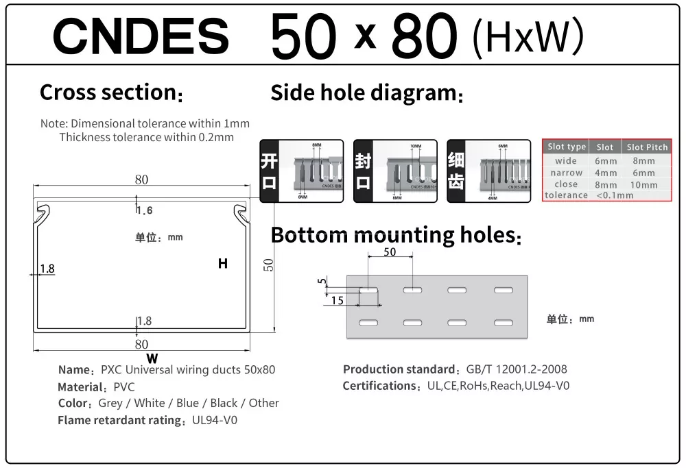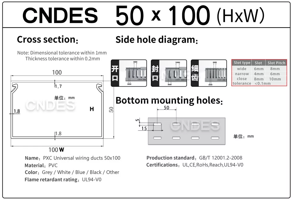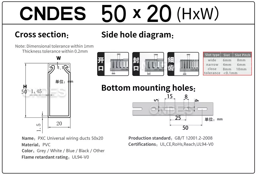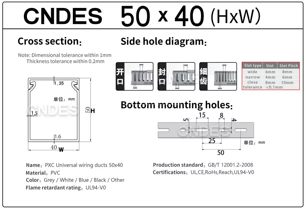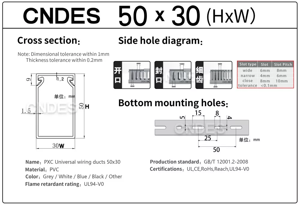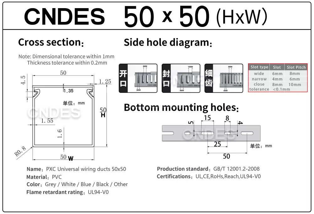 CNDES, Oluklu PVC Panel Kablolama Kanalı tedarikinde uzmanlaşmış bir üretici ve tedarikçidir. Burada, aşağıdaki özellikleri içeren 50 mm yüksek kablo kanalımızı tanıtacağız: 50*20,50*25,50*30,50*35,50*40,50*45,50*50,50*55,50*60,50*80,50*100.