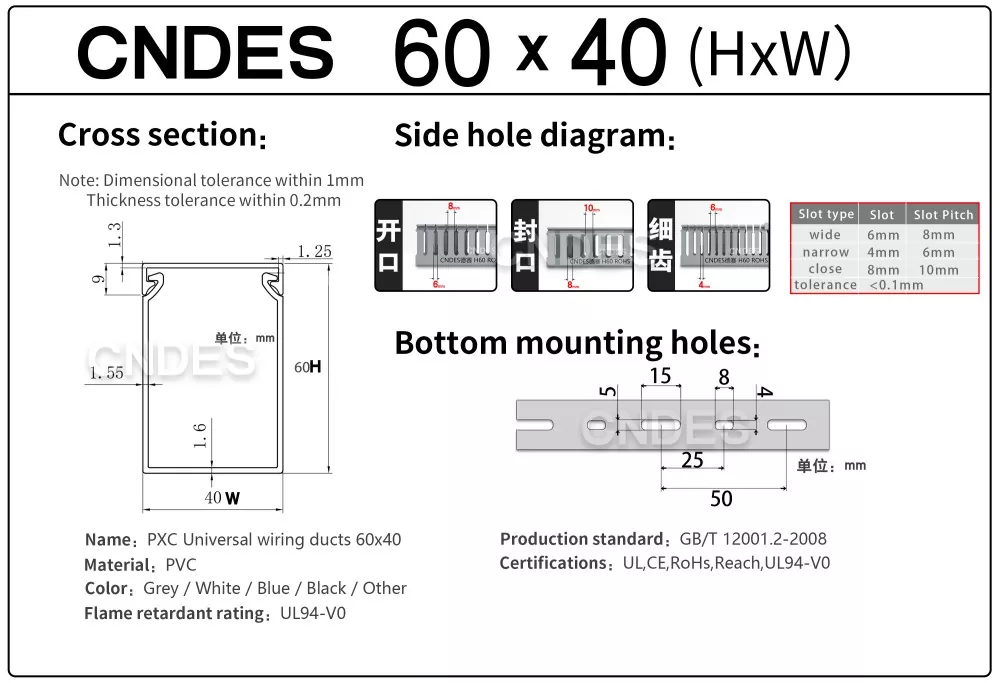 Çin'deki deneyimli bir Özelleştirilmiş 60×40 Alev Geciktirici PVC Kablo Kanalı fabrikası olarak CNDES şunları sağlar: