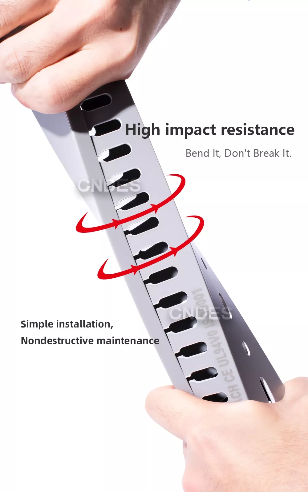 CNDES'in Kontrol Kabini kablo kanalı özel bir PVC formülünden yapılmıştır. Oluklu PVC Kontrol Kabini Kanalı çevre dostudur, alev geciktiricidir ve darbeye dayanıklıdır ve kırılmadan tekrarlanan 180° bükülmeye dayanabilir.
