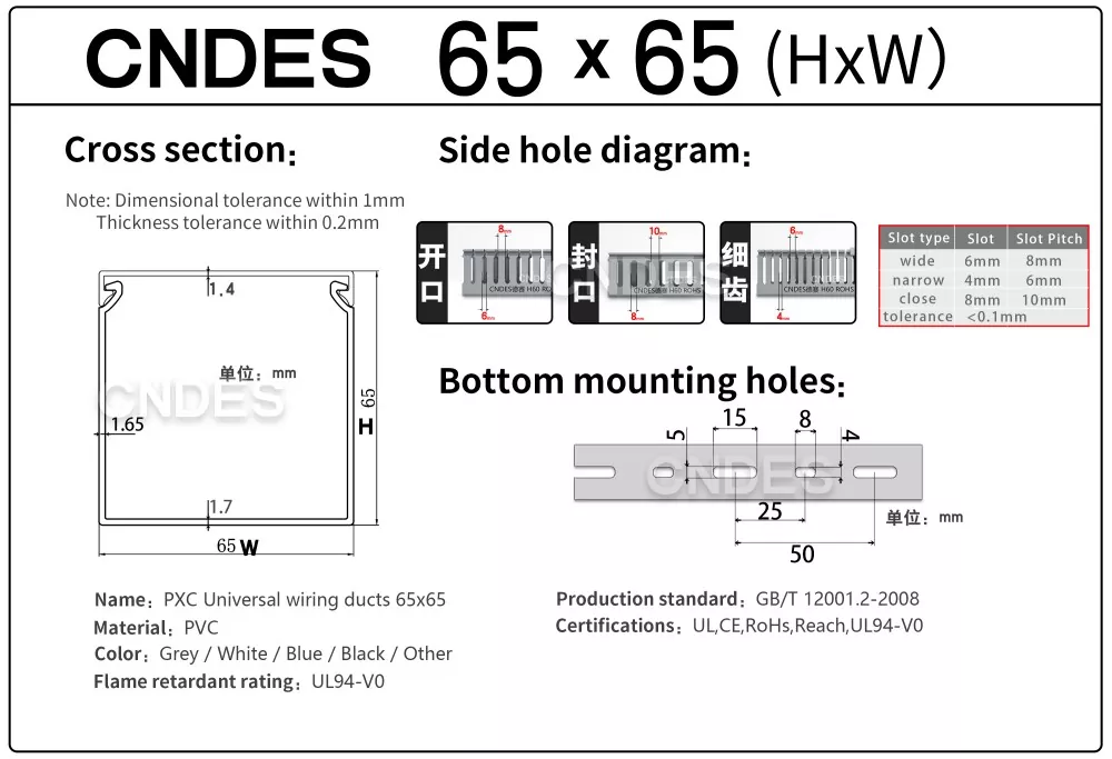Profesyonel bir üretici olarak size CNDES oluklu 65×65 PVC Kablo Kanalı sunmak istiyoruz.