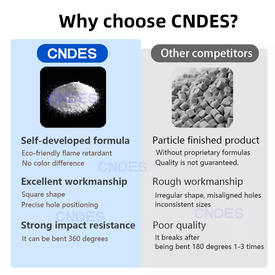 Standart kablo kanalları karmaşık kablo demetlerini barındıramadığında, CNDES Özelleştirilmiş 80×80 Oluklu PVC Santral Kablolama Kanalı iyi bir seçimdir. 80mm*80mm'lik geniş iç alanıyla veri merkezi omurga kablolaması, endüstriyel ekipman güç kümeleri ve büyük kontrol kabinlerindeki merkezi kablolama gibi yüksek talep senaryoları için özel olarak tasarlanmıştır. Çok sayıda kabloyu kolayca barındırır ve düzenler, dağınıklığa ve sıkışıklığa sonsuza kadar veda eder.